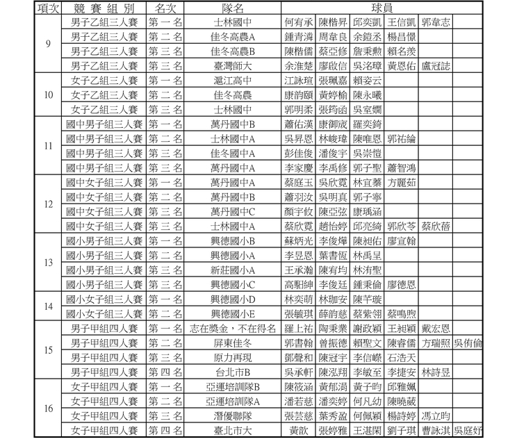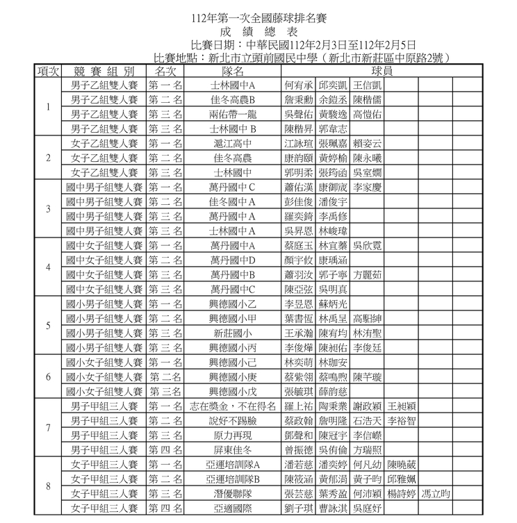 112年第一次全國藤球排名賽