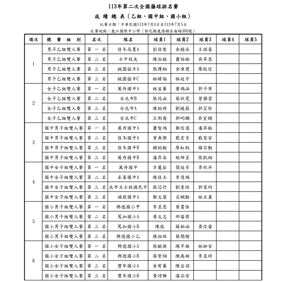男子選手:彭佳俊、余鎧丞、王證豪、盧冠誌、施博允、林皓允