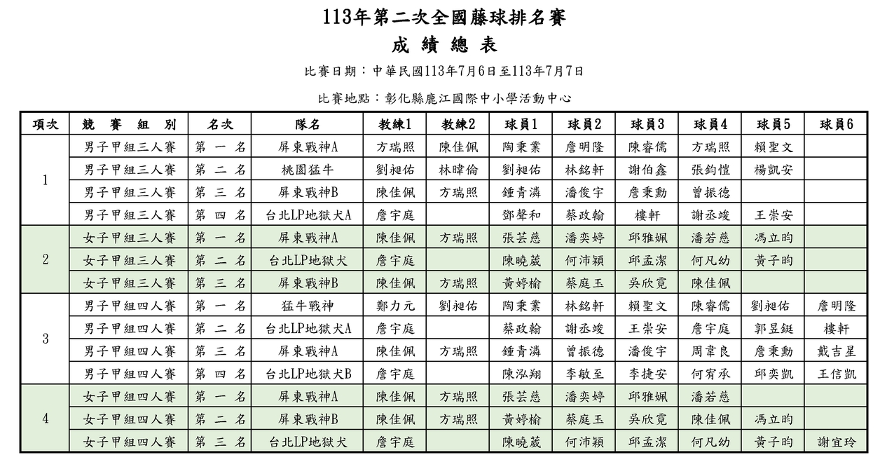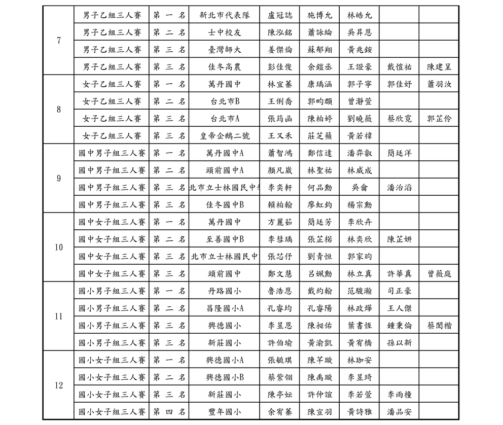 女子選手:林宜蓁、郭子寧、康瑀涵、蕭羽汝