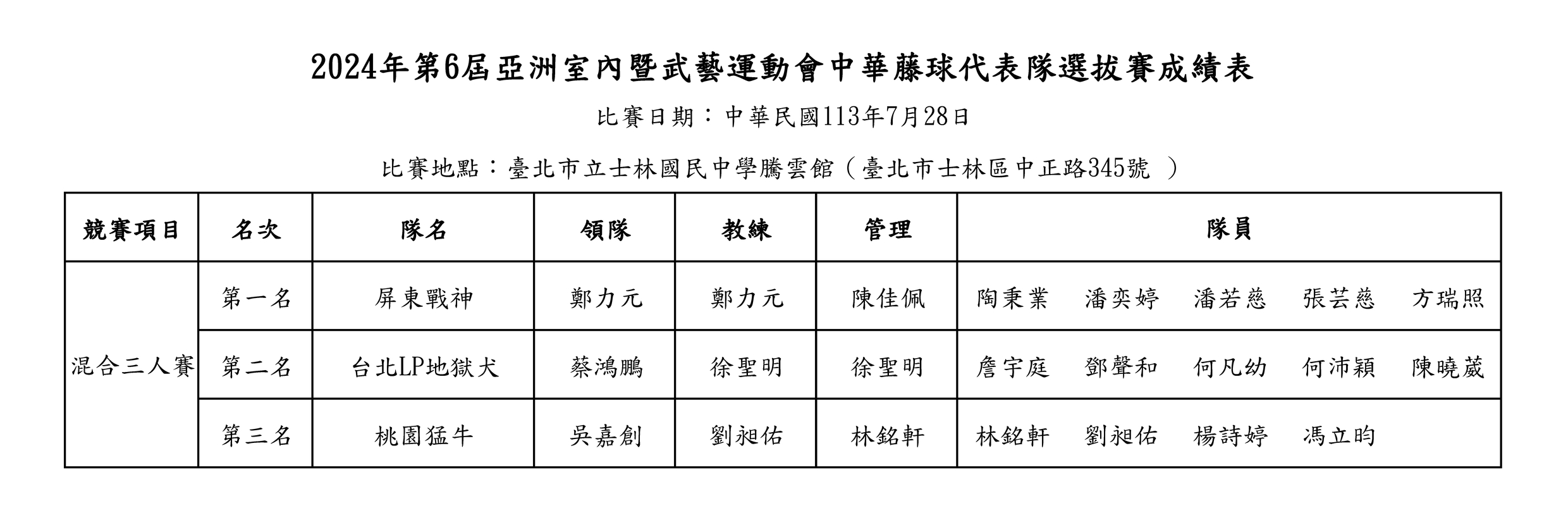 2024年第6屆亞洲室內暨武藝運動會中華藤球代表隊選拔賽